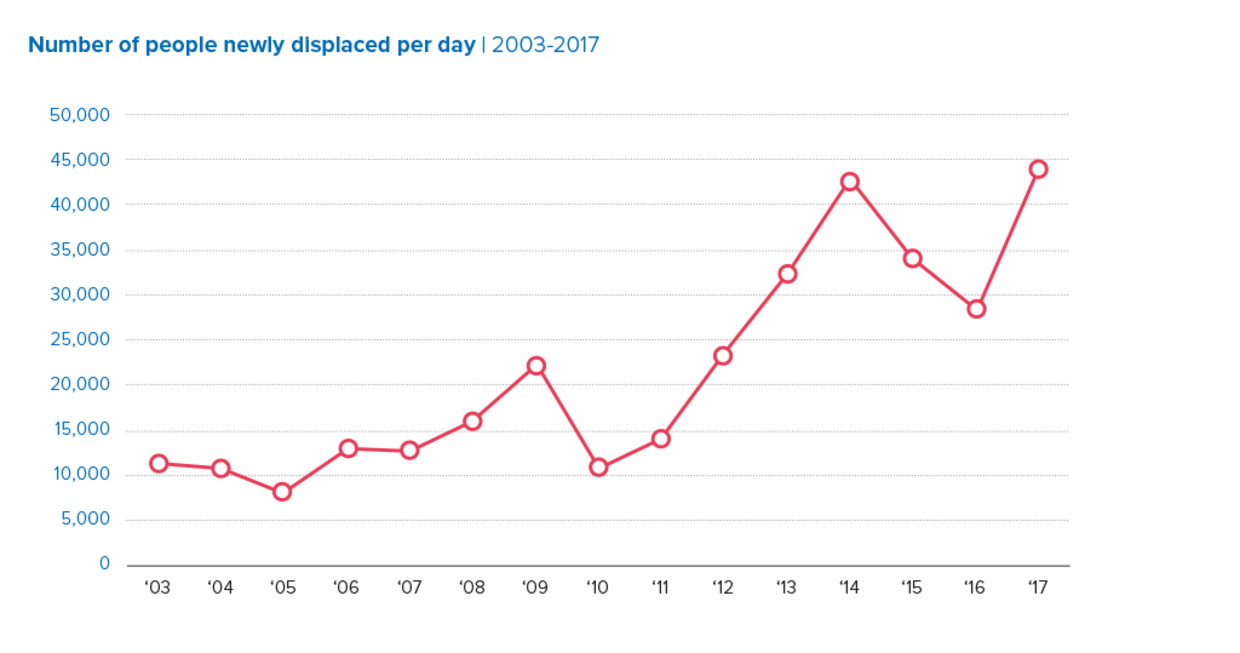 In 2017 steeg het aantal vluchtelingen wereldwijd ...
